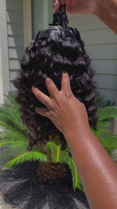 HAIR PACKAGING: Please remember the hair texture may flatten due to the handling of hair packages while being shipped. Once you co-wash, condition and rinse the hair. Then use a Denman brush downward through the hair, squeeze access water out and allow to air-dry. Now again, the actual texture of the hair will be revealed.